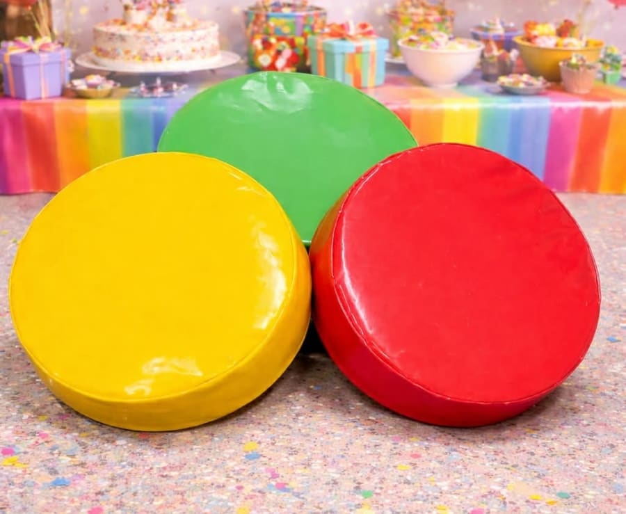 These rainbow stepping stones are designed to create extra movement and interaction within your soft play setup. The bright colours make them a great match for rainbow soft play, circus themes, colourful party setups and other soft play products.